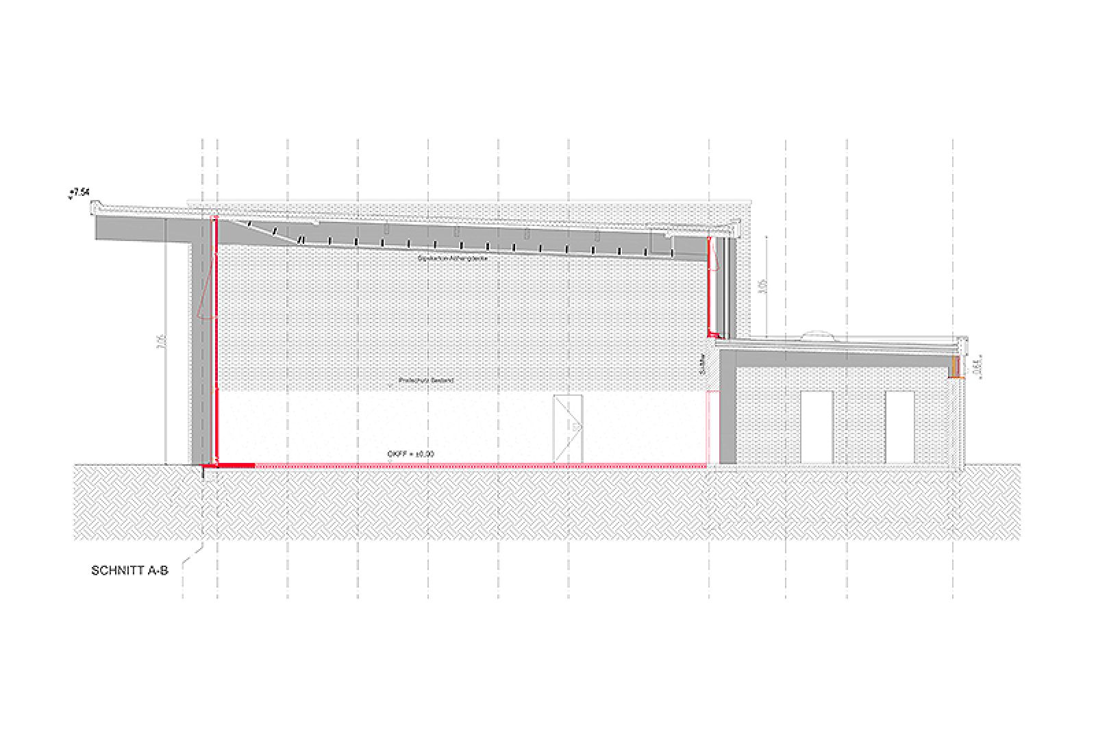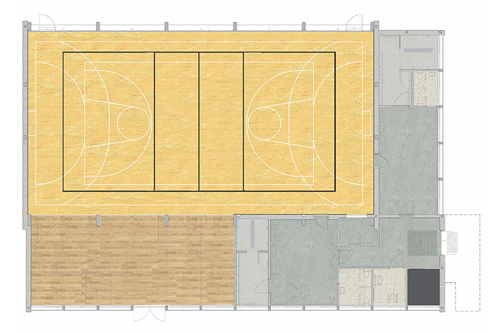 Im Rahmen dieser Maßnahme wurden die energetische Sanierung der Gebäudehülle sowie die innenräumliche Renovierung des Nebenraumtrakts wie folgt ausgeführt: Erneuerung aller Fenster, Erneuerung des Sportbodens mit Fußbodenheizung, inkl. Spieldfeldmarkierung, Teilsanierung der Sanitäranlagen, Waschräume, sowie Malerarbeiten.