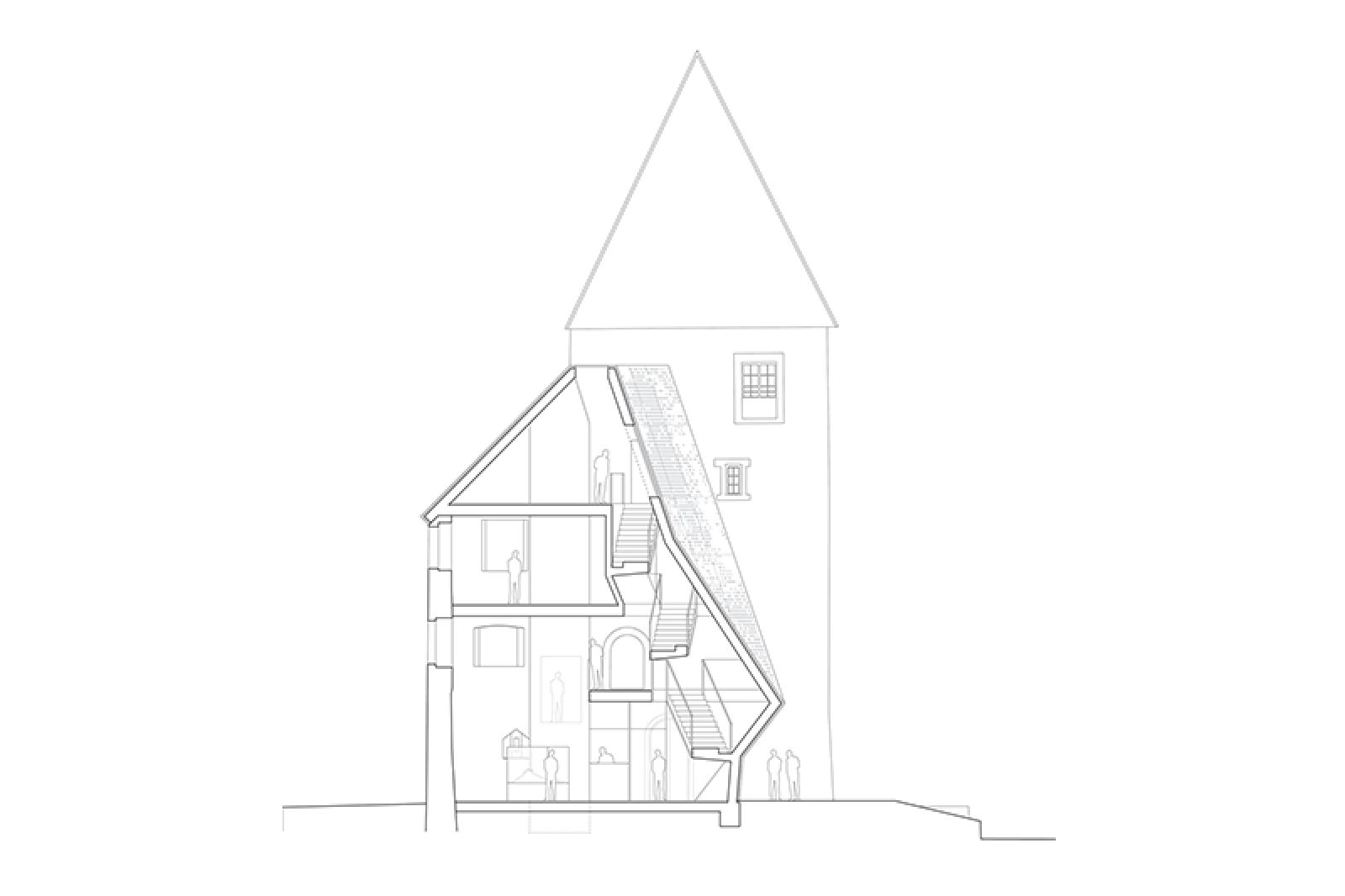 Durch die zenitale Beleuchtung und vertikale Durchlässigkeit des Neubaus wird ein räumlicher Gegensatz zu den Altbauten geschaffen. Das erleichtert die Orientierung innerhalb des Ensembles. Durch den starken Kontrast zwischen neu und alt, erlebt der Besucher die mittelalterlichen Gebäudeteile viel bewusster und ihr Betreten wird zur erlebnisreichen Reise in eine vergangene Zeit.